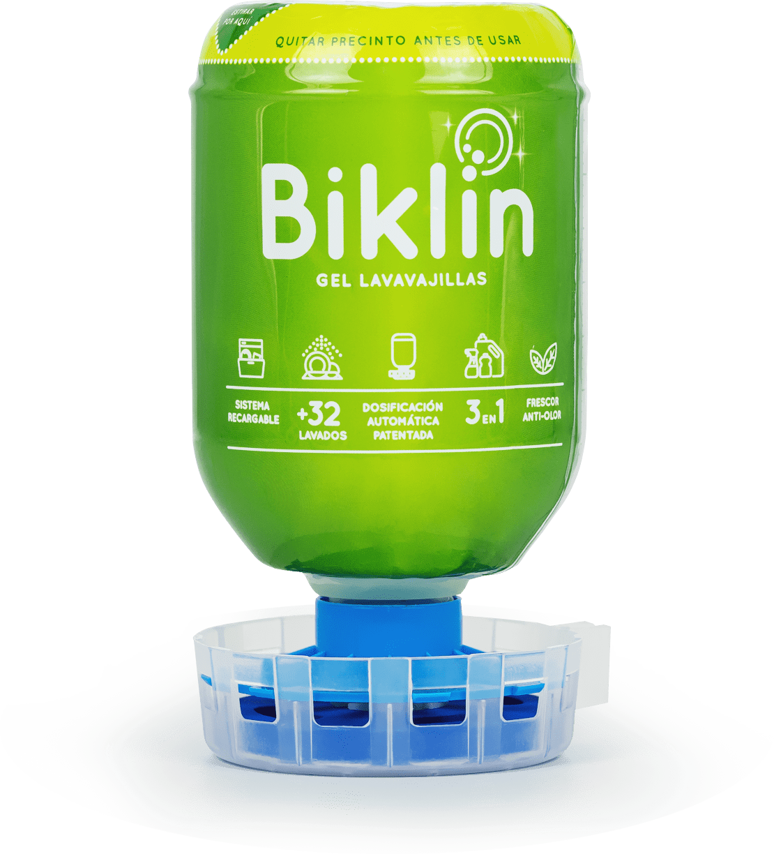 Biklin es un dosificador automático de detergente para tu lavavajillas. Solo tienes que activarlo según las instrucciones y situarlo en cualquier lugar de la bandeja. No tendrás que preocuparte por el jabón en más de 32 lavados. Tan solo, pon en marcha tu lavavajillas.